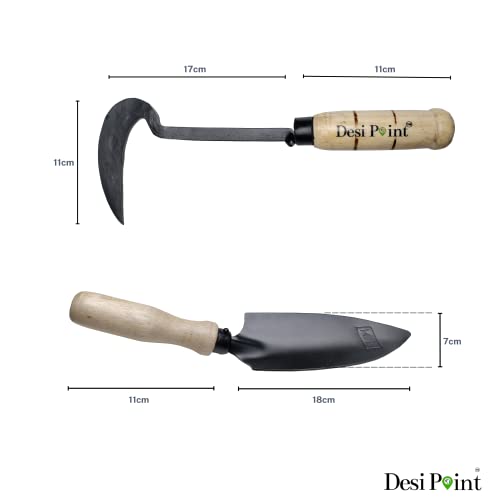 बागकामासाठी देसी पॉइंट हँडमेड खुरपी आणि स्मॉल हँड ट्रॉवेल (खुरपी + स्मॉल ट्रॉवेल)