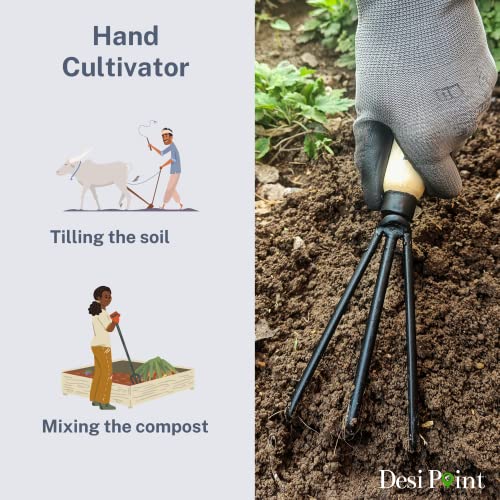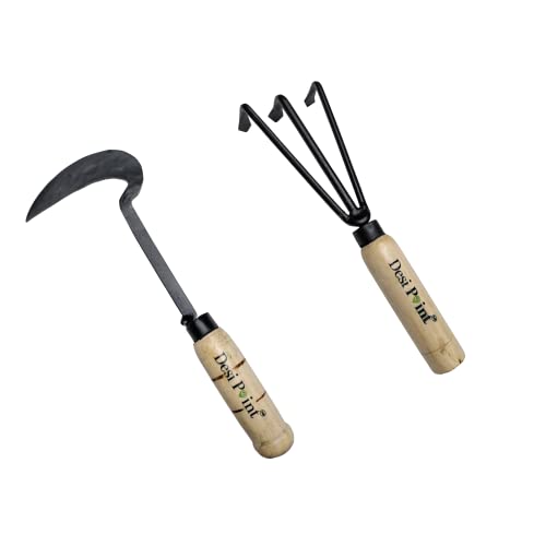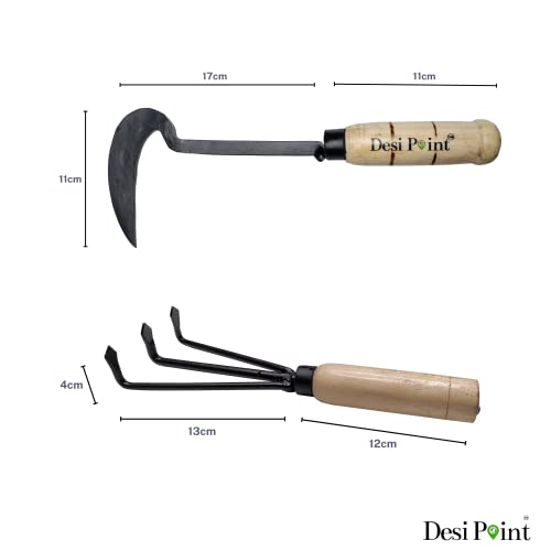 बागकामासाठी देसी पॉइंट हँडमेड खुरपी आणि थ्री टीथ कल्टिवेटर (खुरपी + ३ टीथ कल्टिवेटर)