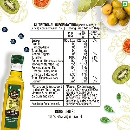 डिसानो एक्स्ट्रा व्हर्जिन ऑलिव्ह ऑइल, प्रथम कोल्ड प्रेस्ड, 250 मि.ली