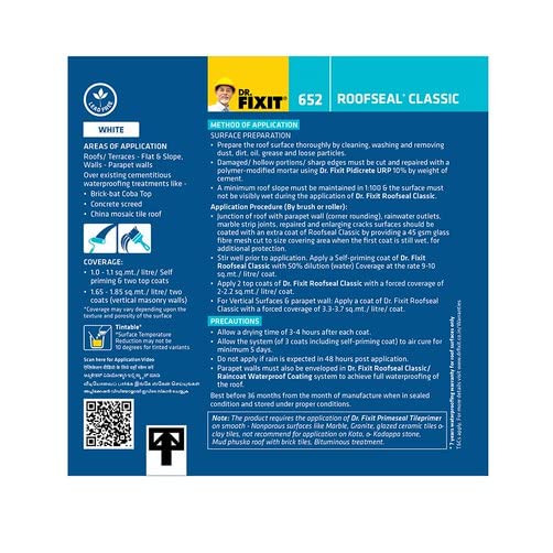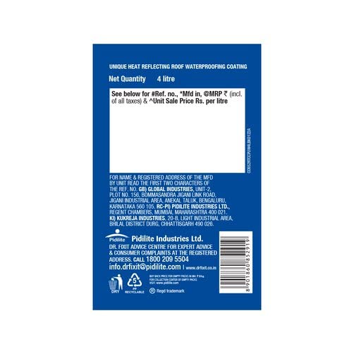 डॉ. FIXIT रूफसील क्लासिक, 4 लिटर, घरांसाठी वॉटरप्रूफिंग सोल्यूशन, टेरेस, छप्पर