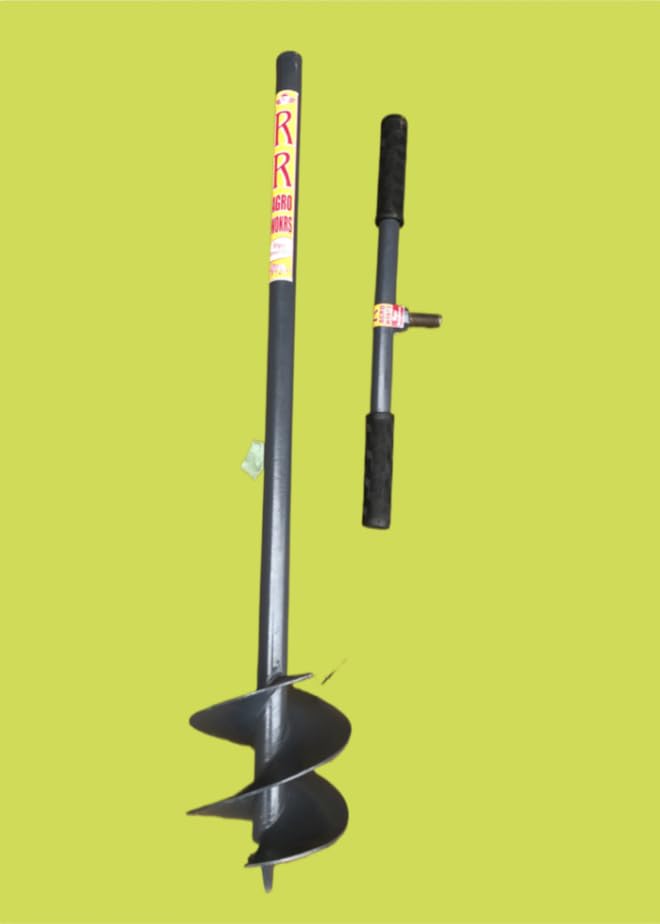 अर्थ होल डिगर ड्युअल ब्लेड्स, शेतीसाठी शेतीची साधने (चेसिस ग्रे मध्ये 5 इंच डायमेटर रंग)