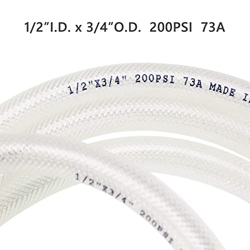 Eastrans 1/2 इंच, (0.5 इंच) 65 FEET हेवी ड्युटी ब्रेडेड वॉटर होज पाईप जोडण्यास सोपी, घरासाठी वापरा, बाग, कार धुणे, फरशी स्वच्छ, पाळीव प्राणी स्नान, शेती आणि औद्योगिक रंग - क्लियर ब्रेडेड)