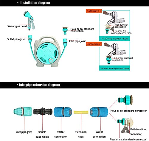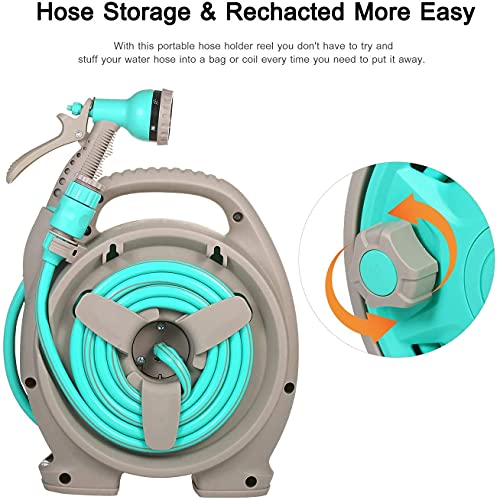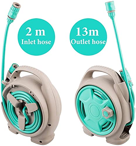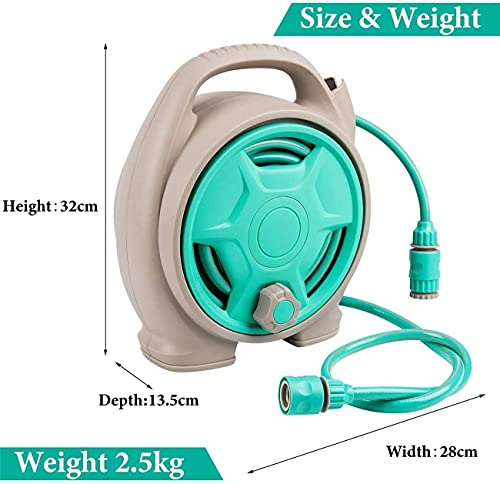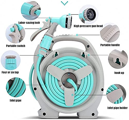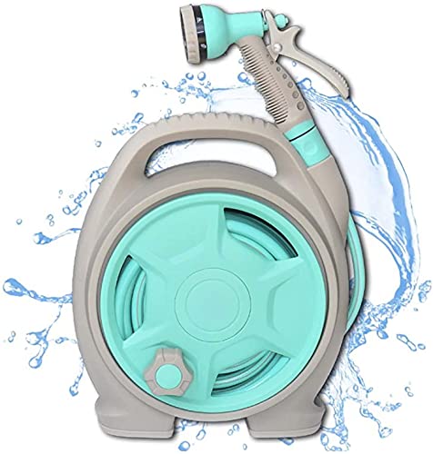EKYLIP मिनी पोर्टेबल गार्डन पाईप होज रील कार्ट विथ वॉटर स्प्रे गन सेट ॲग्रीकल्चरल होम गार्डन स्टोरेज सूट कार्ट कार वॉश होज कार (15M)