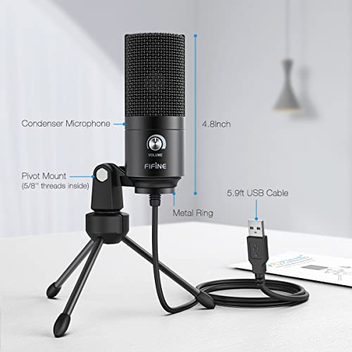 विंडोज किंवा विंडोज पीसी आणि लॅपटॉपवर रेकॉर्डिंगसाठी FIFINE K669B मेटल यूएसबी मायक्रोफोन कंडेन्सर, व्हॉइस रेकॉर्डिंगसाठी कार्डिओइड स्टुडिओ, इनपुट व्हॉल्यूम कंट्रोल नॉब, स्ट्रीमिंग आणि YouTube व्हिडिओ