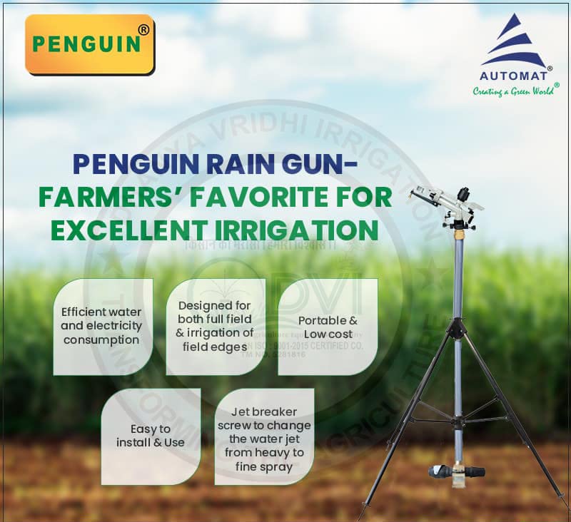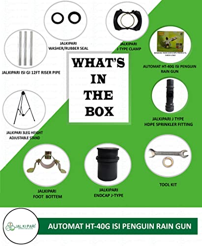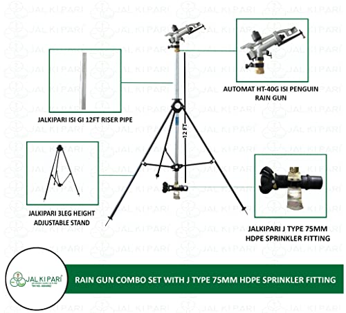 जलकिपारी® रिंगुन सेट कॉम्बोसह स्वयंचलित HT40G पेंग्विन रेन गन, संपूर्ण पाईप कनेक्टर किट, 12 फूट ISI GI राईसर पाईप, 3 लेग हाईट ॲडजस्टेबल स्टँड.