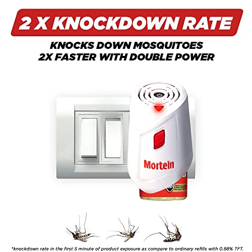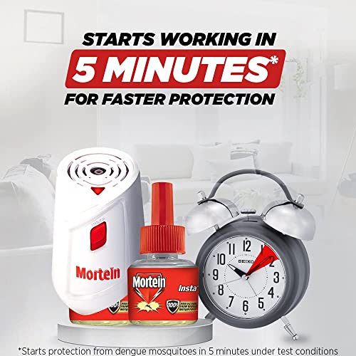 तपशील: Mortein insta 5 प्लग-इन मॉस्किटो रिपेलेंट एक सुलभ लिक्विड व्हेपोरायझर स्वरूपात येते जे डेंग्यूला कारणीभूत असलेल्या डासांपासून संपूर्ण संरक्षण देते. सक्रिय घटकांसह तयार केलेले, मॉर्टिन व्हेपोरायझर हे डासांना दूर करण्यासाठी एक शक्तिशाली आणि सोयीस्कर उपाय आहे आणि संभाव्य रोग आणि आरोग्य धोक्यांपासून संरक्षणाची पहिली ओळ म्हणून काम करते. Mortein insta 5 मॉस्किटो रिपेलेंट, नावाप्रमाणेच, डासांना ताबडतोब मारण्यासाठी प्रभावी आहे, विशेषत: प्लग इन केल्यानंतर 5 मिनिटांच्या आत. रिफिल बाटली सर्व उपकरणांना (चांगल्या नाइट एक्सप्रेस वगळता) बसते. शिवाय, मॉर्टिन डिव्हाइसमध्ये एक उत्कृष्ट हीटिंग सिस्टम आहे जी कमी विजेचा वापर आणि उच्च आणि कमी तीव्रतेच्या मोडसह ड्युअल मोड मशीन सुनिश्चित करते, आपण आणि आपले कुटुंब नेहमी सुरक्षित राहाल याची खात्री करा. लिक्विड व्हेपोरिझरची बाटली 45 रात्री 8 तासांच्या मंजूर वापरात टिकेल.