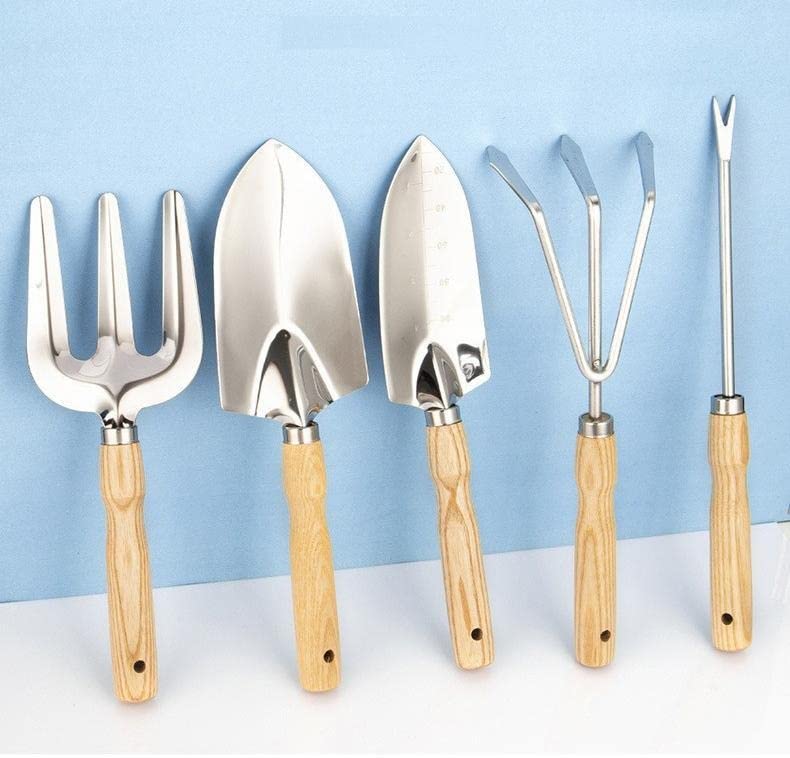 शॉपरब 5 पीस वुडन गार्डन टूल सेट | होम लॉन किचन गार्डनिंग टूल्स किटसाठी आदर्श | शेती आणि बाग उपकरणे