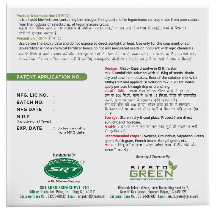 सिस्टो ग्रीन बायोफर्टिलायझर आणि बायोपेस्टिसाइड रायझो कॅप्स (6 कॅप्सूल)
