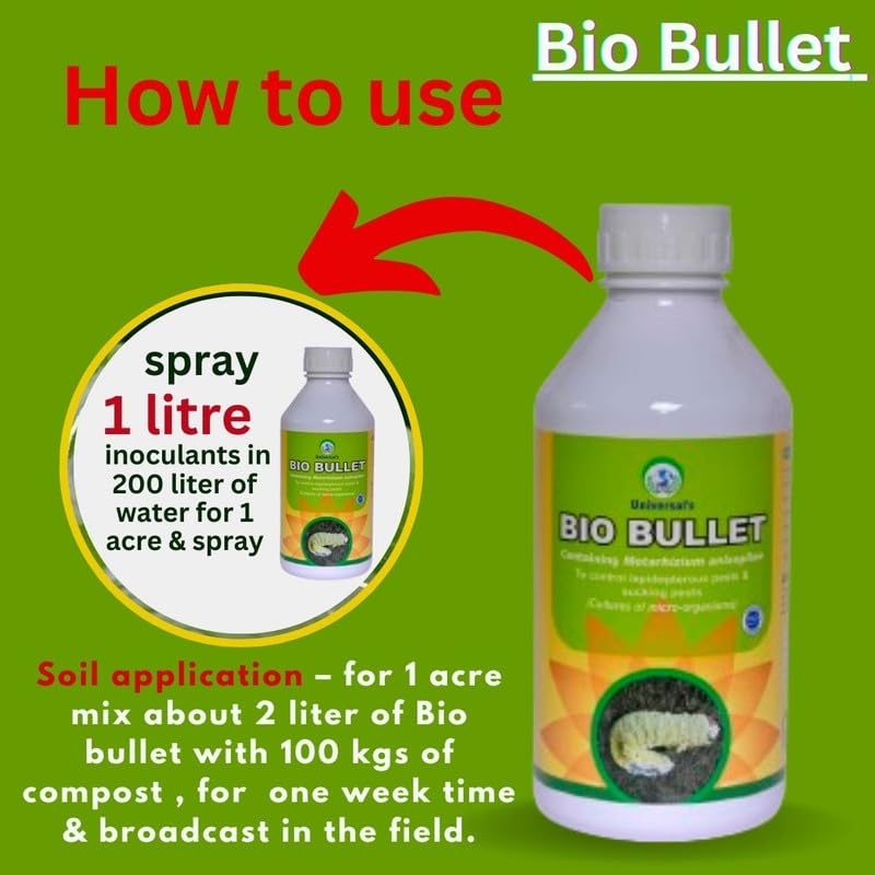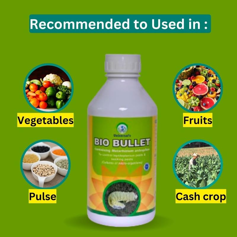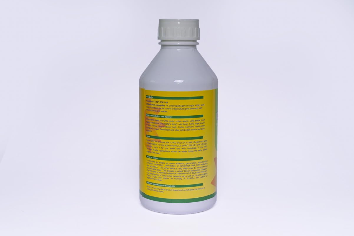 युनिव्हर्सल बायोकॉन बायो बुलेट ज्यामध्ये मेटारहिजियम ॲनिसोप्लिया एन्टोमो पॅथोजेनिक बुरशी आणि मोठ्या प्रमाणावर जैव-कीटकनाशक नियंत्रण कृषी कीटक, 1 लिटर, 1 चे पॅक