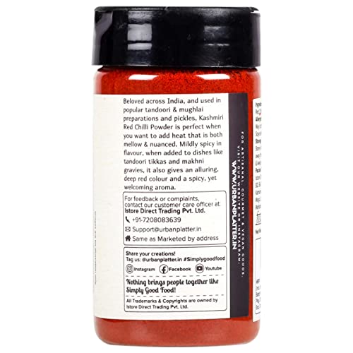 - शहरी थाळी काश्मिरी लाल मिरची पावडर शेकर जार, 100 ग्रॅम / 3.5oz [सर्व नैसर्गिक, प्रीमियम गुणवत्ता आणि मसालेदार]