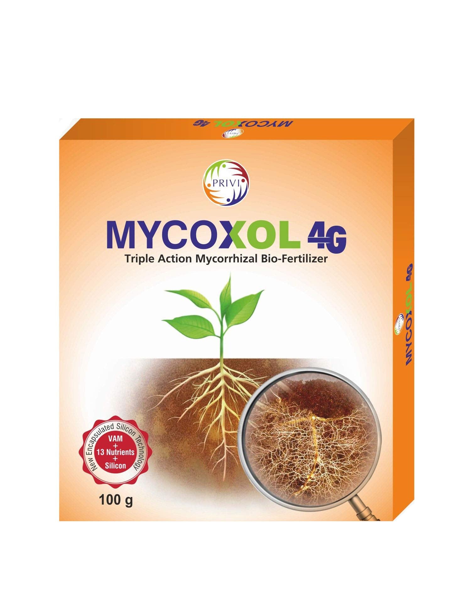 Details: Privi Mycoxol 4g is a triple action Mycorhizal bio-fertiliser.It is an unique blend of different species Glomus, an endophytic Vesicular Arbuscular Mycorrhiza fortified with 13 vital nutrients and empowered with encapsulated silicon. ***RECOMMENDED FOR AGRICULTURAL USE ONLY***