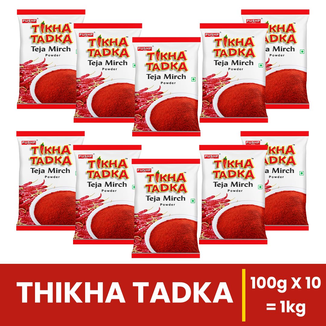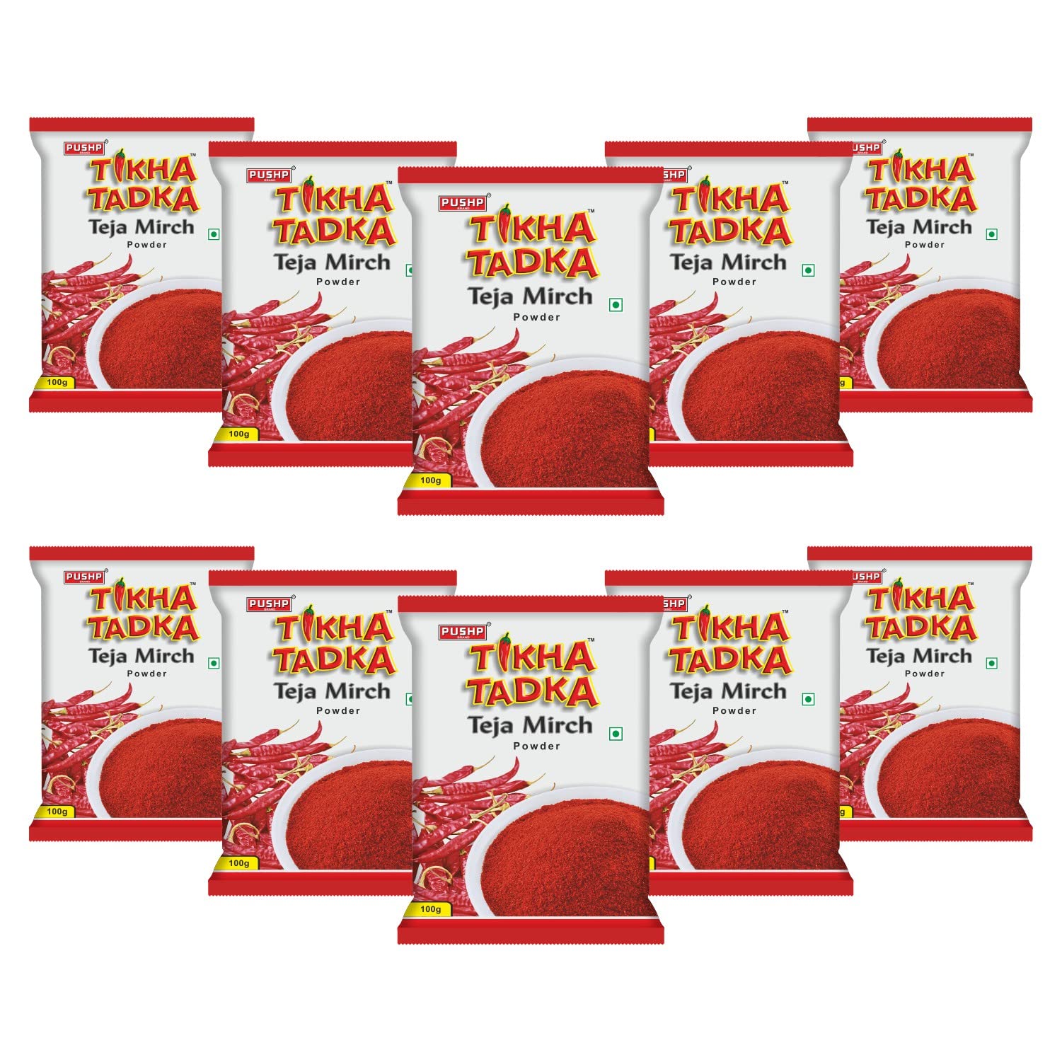 Pushp Brand Fine Red Chili Powder Tikha Tadka (100g) (Pack of 10)