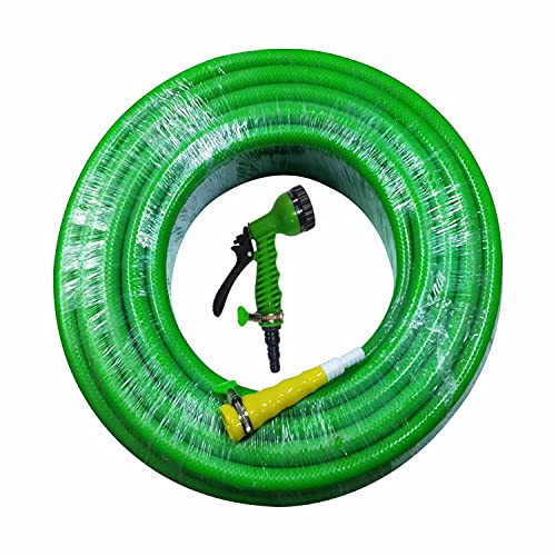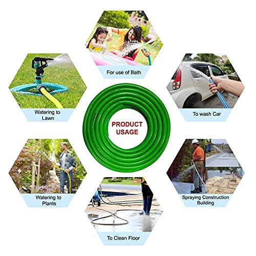 Details: Description 30 Meter PVC Braided Hose Pipe 3/4" (0.75 Inch or 20mm) Bore Size with 7 Function Spray Gun, 1" Tap Connector & 2 Butterfly Clamps 3 Layered Puncture and Crush Resistant Hose All weather non-crackable PVC braided hose Reinforced with High Tenacity Synthetic Yarn Kink & Abrasion Resistant Excellent Presssure sustainability Anti Aging & Non-Corrosive Heavy duty nature eliminate kinks, twists and tangles Light Weight - easy to use Best suited for different purposes like gardening, water dispensing, home cleaning, convey water to the sprinkler, car & bike washing, floor cleaning, agricultural uses etc..